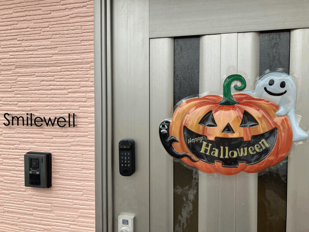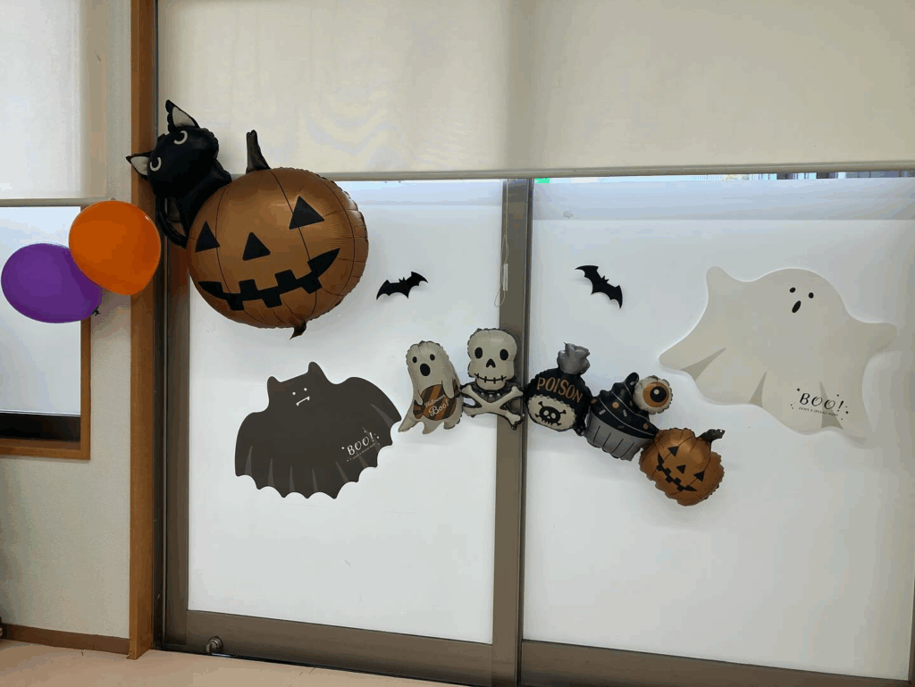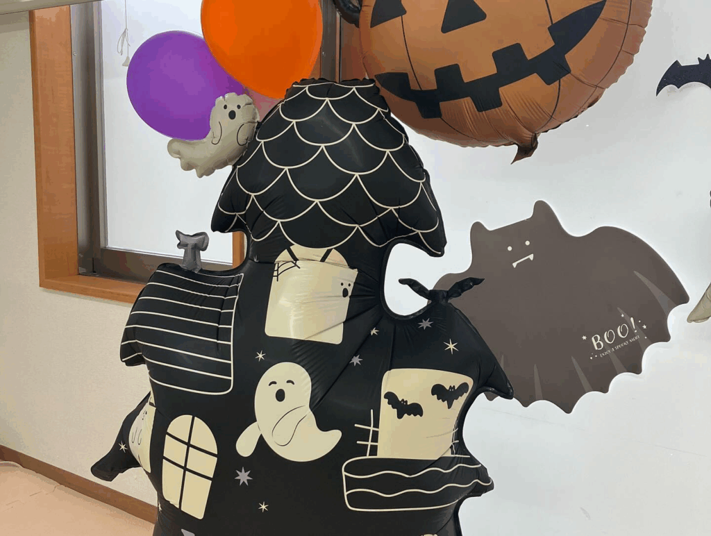 スマイルウェル1では、ハロウィンのフォトブースと休暇コーナー